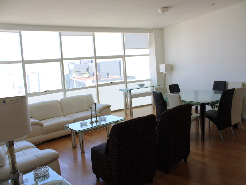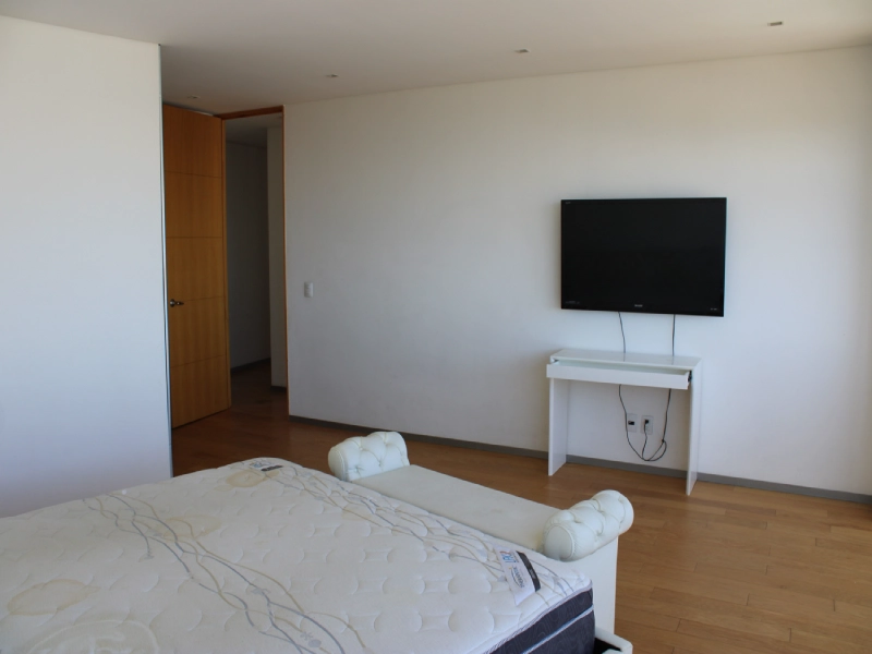 En renta excelente departamento completamente amueblado y equipado en City Santa Fe, frente al Parque La Mexicana. Cuenta con tres recámaras amplias, principal con vestidor y baño completo, medio baño de visitas, amplia cocina, edificio con alberca, gimnasio, spa, vapor, asadores, área de juegos infantiles, salón de adultos, salón de fiestas, estricta vigilancia 24 horas.