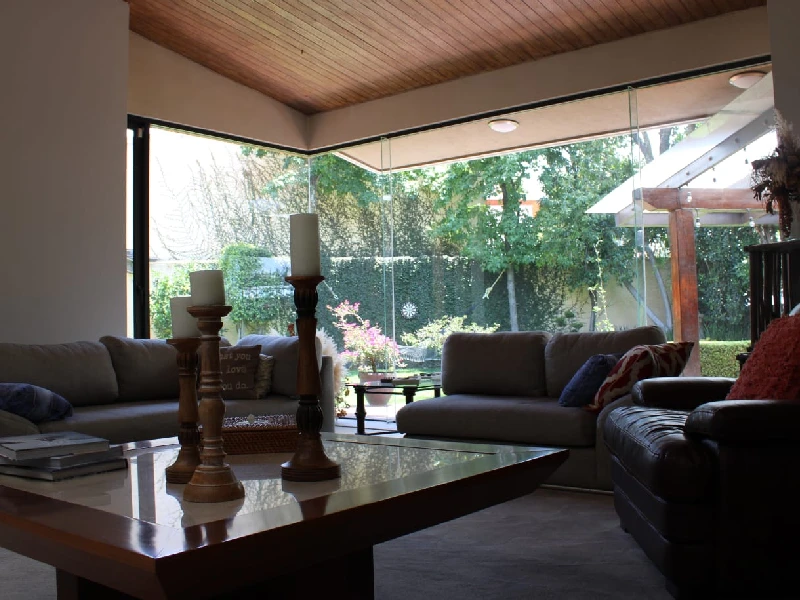 Apenas entres a la casa te darás cuenta de la extraordinaria distribución de esta propiedad, la cual cuenta con ventanales de piso a techo que te brinda la sensación de estar en un mismo espacio junto con el jardín. Si te gusta cocinar y tienes mucho muchos utensilios, el espacio con el que cuentas aquí es el adecuado, ya que cuenta con una área especial para las vajillas y también cuentas con una área exclusiva para acomodar tu despensa. La vista al jardín desde el desayunador es muy agradable para disfrutar junto a tu familia. La casa cuenta con un salón de eventos equipado con mesa de billar, medio baño para visitantes y una extraordinaria cava de vinos. Una vez que llegues a la parte alta vas a tener dos recámaras, cada una con su baño y vestidor, la principal realmente esta pensada para brindar relajación y confort porque está bañada de luz natural en todas sus áreas incluyendo el baño, una tina de hidromasaje, un espacio para poner un escritorio o un sillón porque realmente es de un extraordinario tamaño.