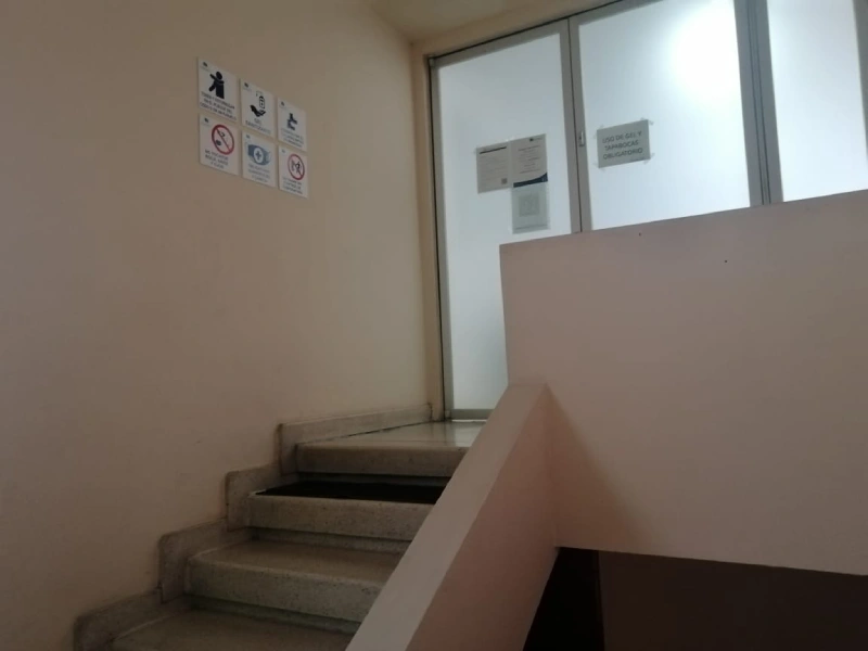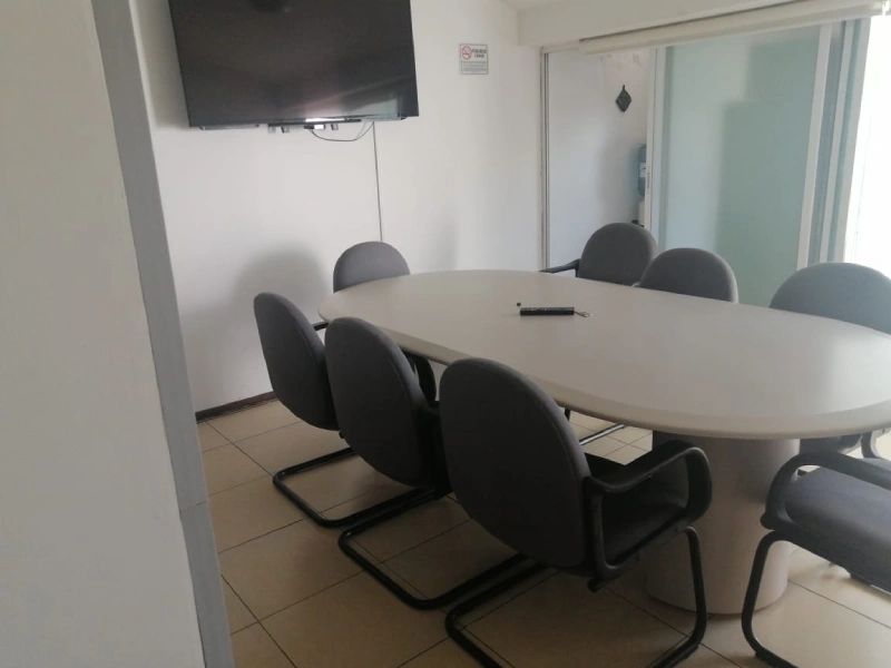 Desarrollada en dos niveles, cuenta con amplios espacios iluminados y ventilados, área de recepción para cinco personas, dos medios baños, dos estacionamientos exclusivos y amplios, cuatro privados, tres estaciones con opción de agregar más, sala de juntas, oficina privada de dirección con terraza, cocineta y asador.