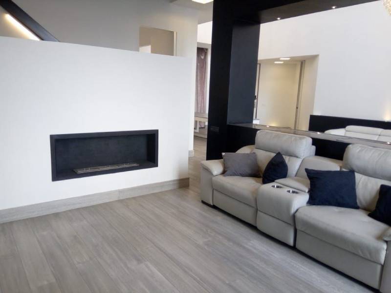 Cuenta con finos acabados, chimenea, preparación de audio, cuarto de servicio, tres estacionamientos, dos bodegas, diseñado en doble altura. Su imponente entrada y sus vistas al centro comercial y a Av. Santa Fe lo hacen tener una ubicación inmejorable. Es un Pent house para los gustos más exigentes.