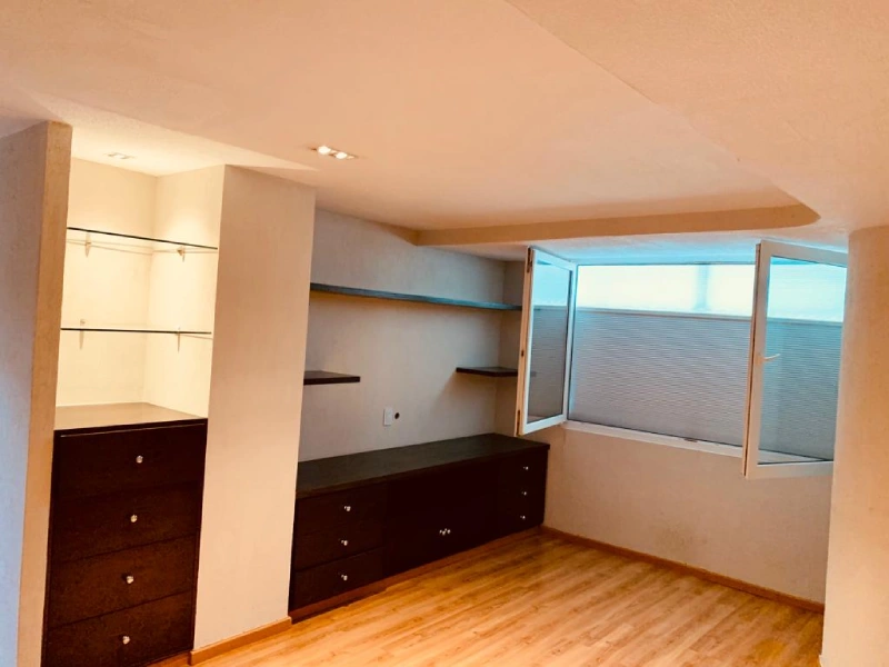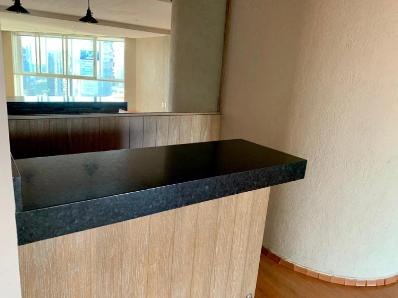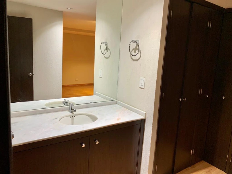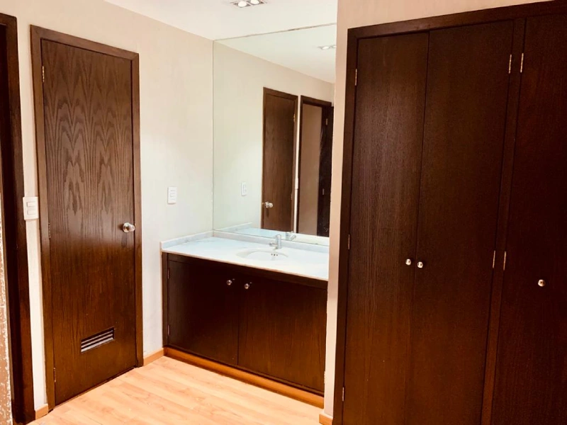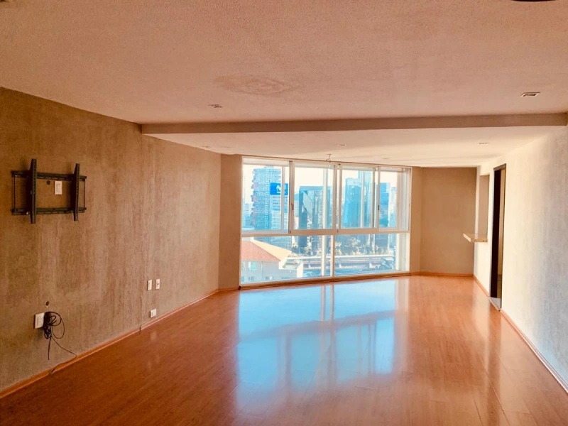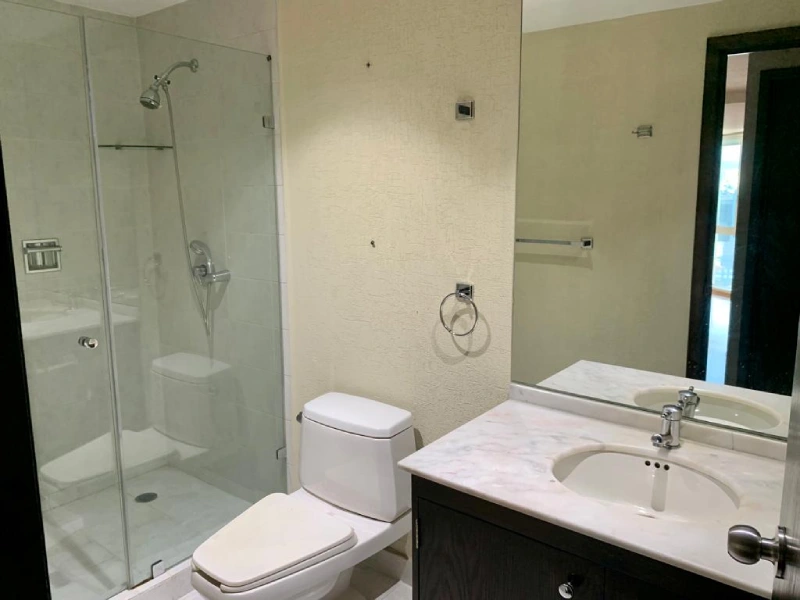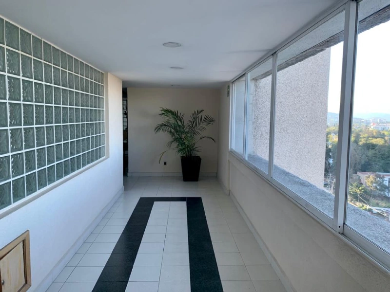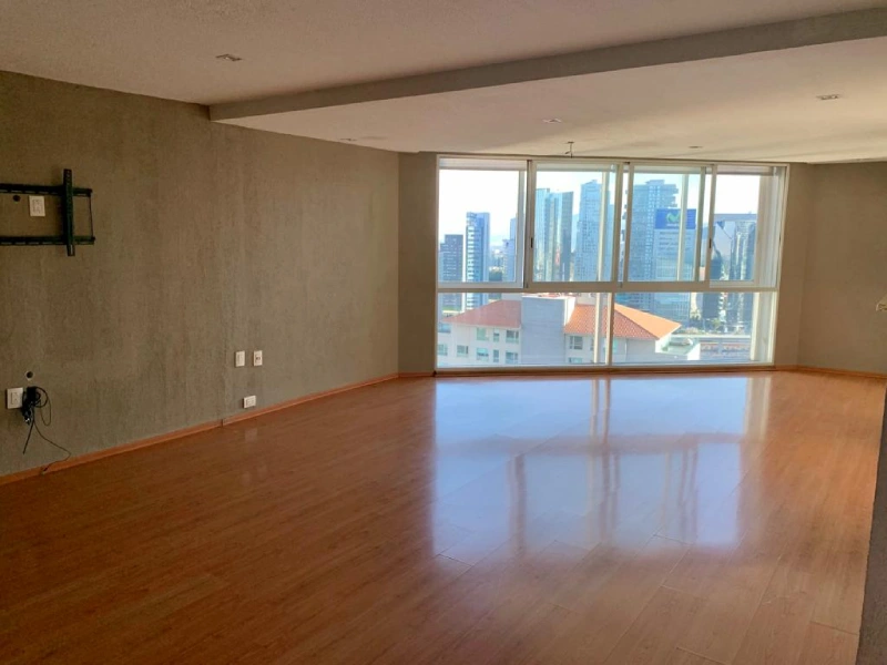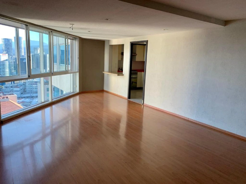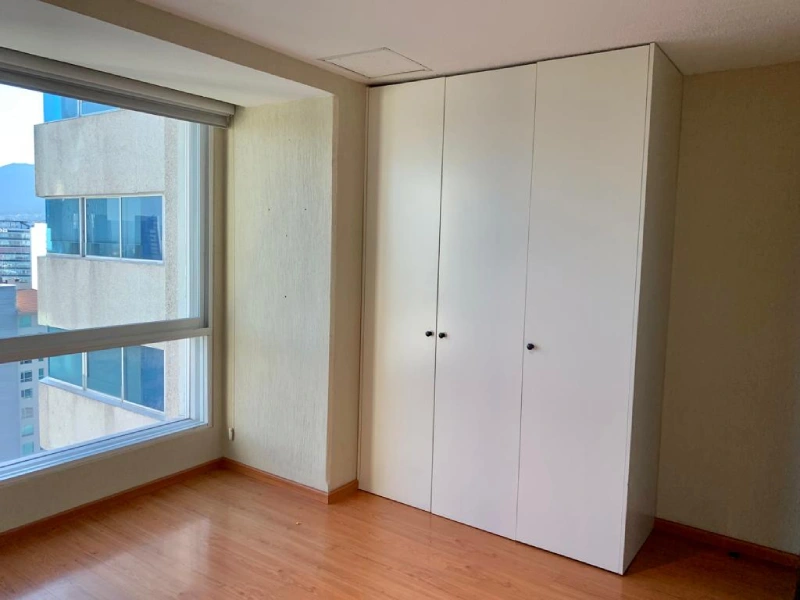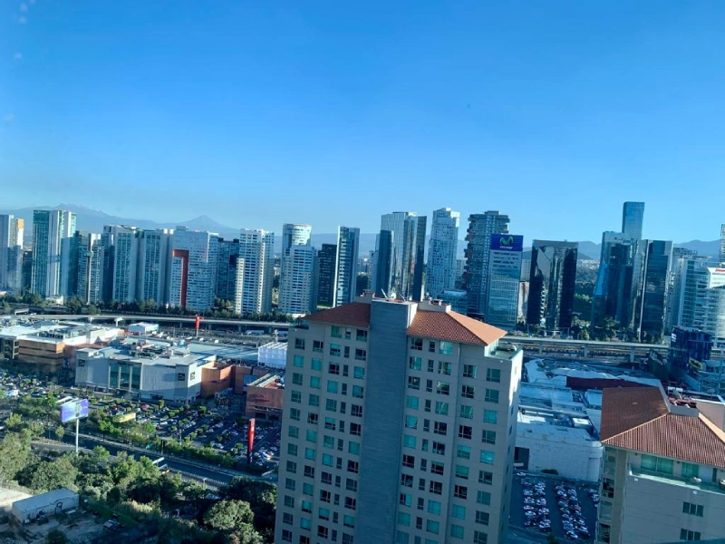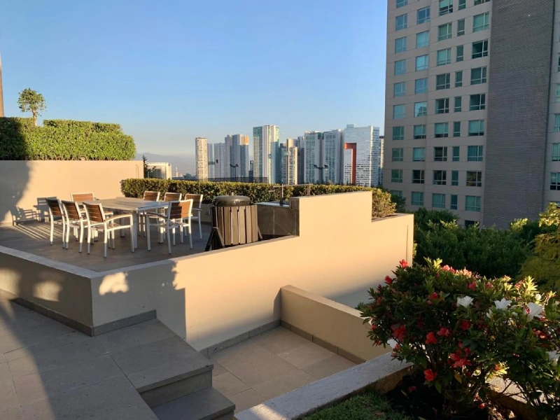 Renta de departamento en Santa Fe, CDMX, en Giralta, frente al Centro Comercial Santa Fe. Cuenta con amplios espacios, muy iluminado, recámara principal con baño completo, cocina abierta, sala comedor, cuarto de lavado, ventanas que bloquean el ruido, un lugar de estacionamiento. El edificio cuenta con amenidades como salón de fiestas, cancha de futbol, jardines, área de asadores, área de juegos infantiles, gimnasio, lounge, vigilancia 24 horas.